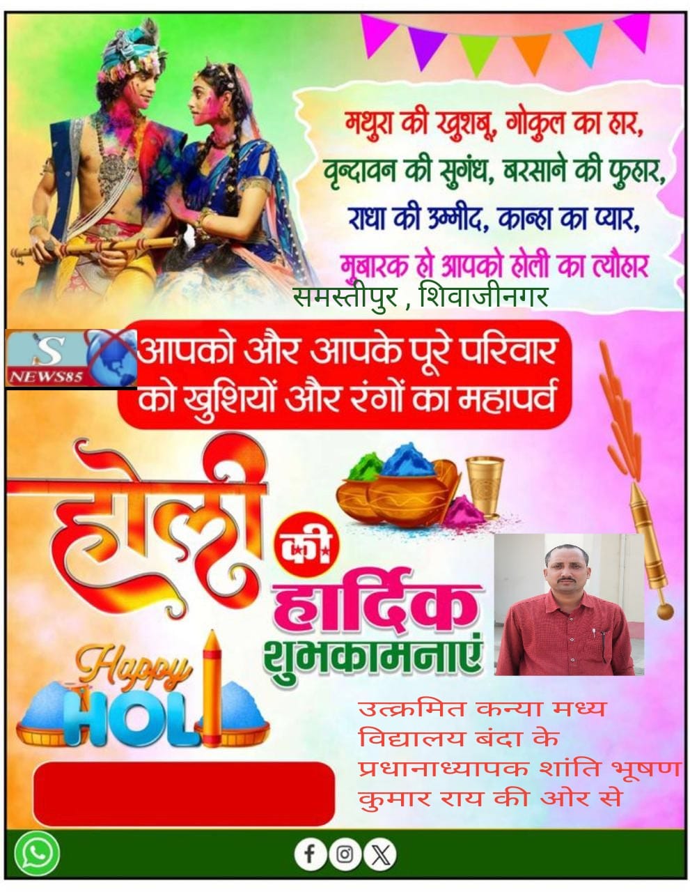 होली का यह पावन पर्व समाज में प्रेम, सौहार्द और एकता को मजबूत करने का संदेश देता है। आइए, इस होली पर हम सभी मिलकर खुशियां बांटें और सुरक्षित व सौहार्दपूर्ण तरीके से रंगों के इस त्योहार का आनंद लें।